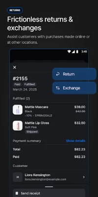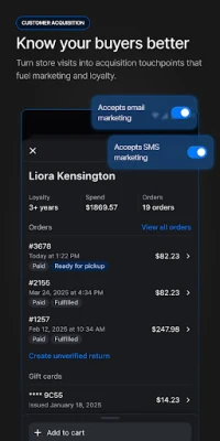• Create fully-synced customer profiles so staff can give every customer a personal shopping experience with quick access to notes, lifetime spend, and order history